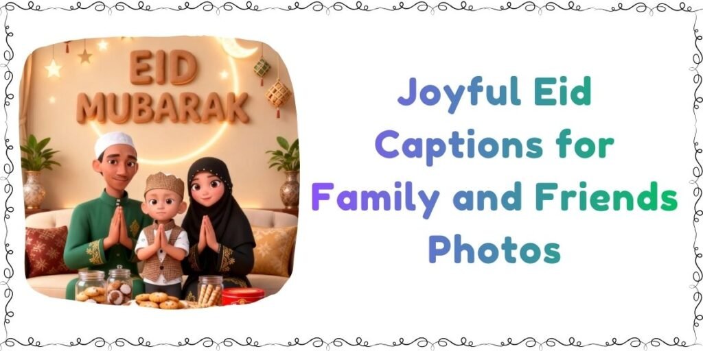 Family photos often shine with warm and loving captions. Many people use eid family captions, sweet eid with family captions, and heartfelt eid family moments captions to highlight togetherness.